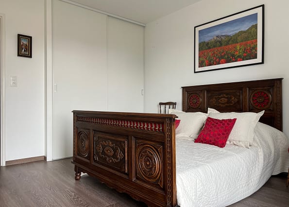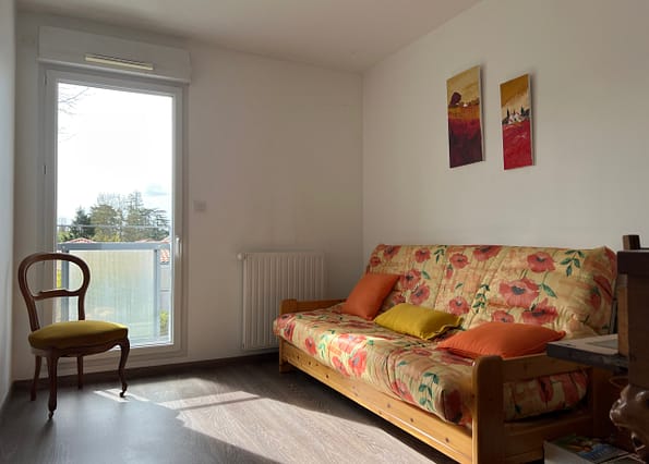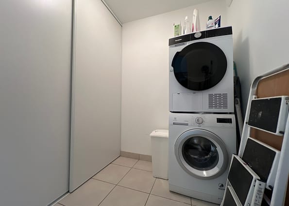 L’ensemble donne sur une vaste terrasse de 16 m² exposée sud/ouest. Un espace nuit accueille un grand wc séparé, une salle de bain avec douche et baignoire, une buanderie avec placard et deux chambres dont une avec placard.