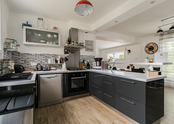 Au rez-de-chaussée découvrez 40 m² de surface Salon / Séjour / Cuisine ouverte, un espace bureau parfait pour le télétravail ou pour aménager une chambre supplémentaire