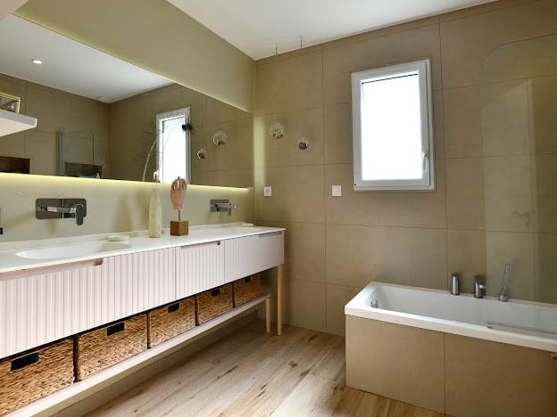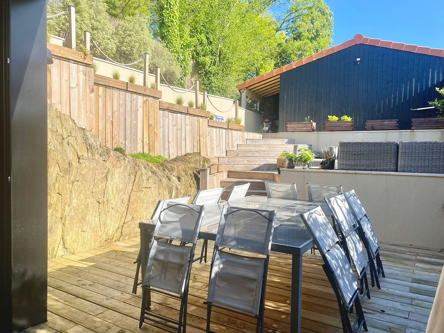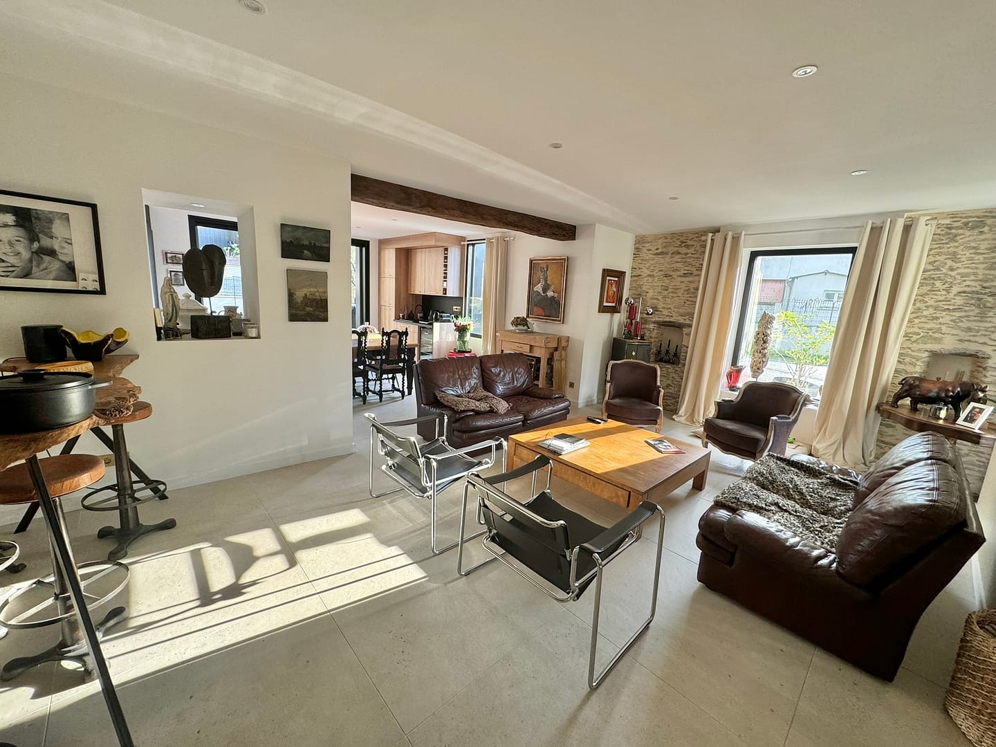 Luxe, calme et volupté pour cette maison de pierre et de bois, 3 chambres (possibilités 4), terrasses, garages – Quartier Pierre Percée – Vertou (44)