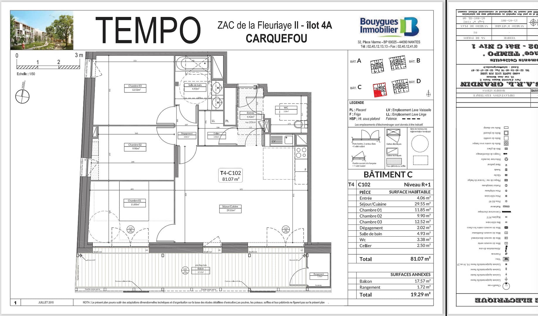Avec le centre bourg de Carquefou visible depuis le balcon, découvrez ce superbe appartement de 81 m², livré en 2017, avec ses 3 chambres, sa cuisine aménagée et équipée, une salle de bain avec double vasque et baignoire, une buanderie et un wc séparé.